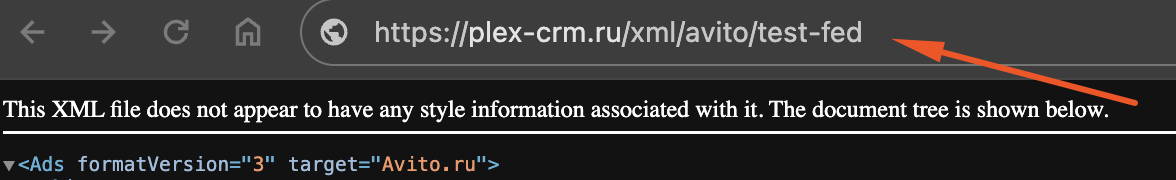 • В адресной строке браузера скопируйте фид (с http/https) и вставьте его в поле "Ссылка на фид" в Авито.