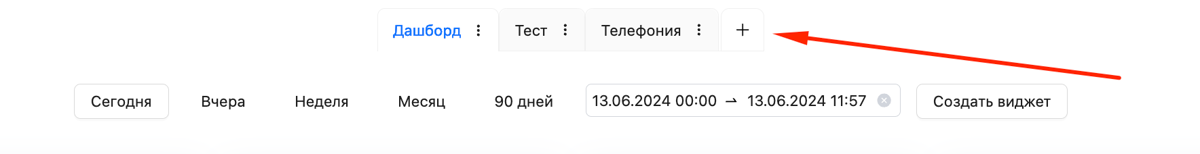 - Нажмите на "+" рядом с названием текущего дашборда.