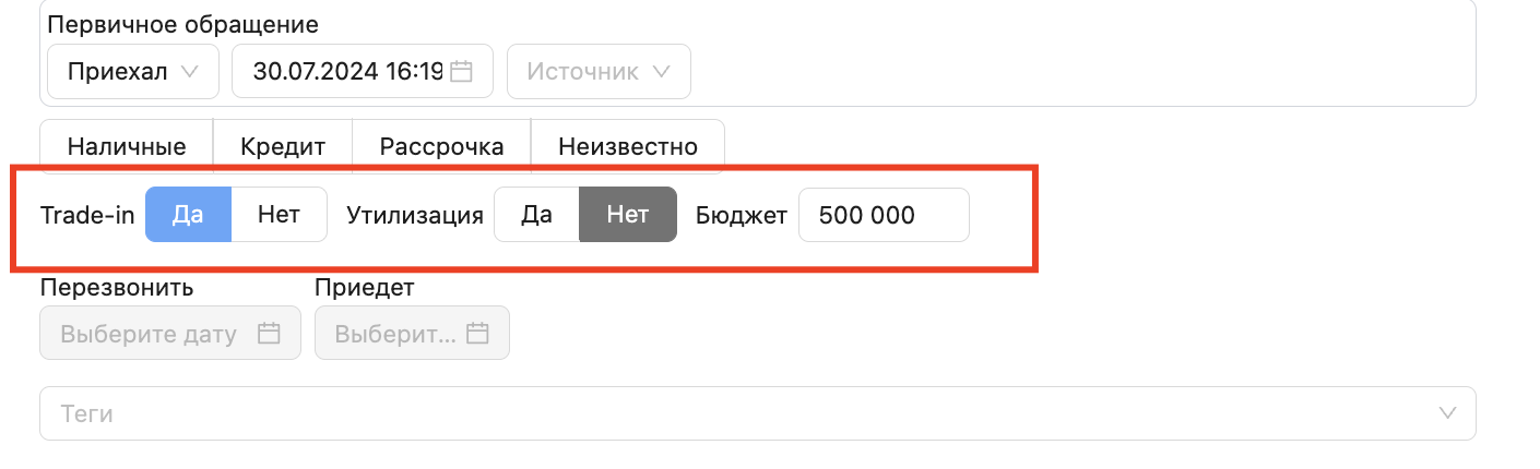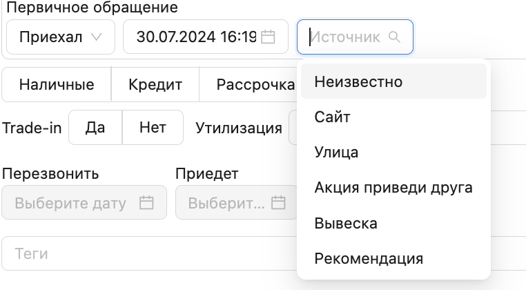 1. Первичное обращение: В новой версии системы пользователи могут указывать тип первичного обращения при создании сделки. Варианты первичного обращения включают: