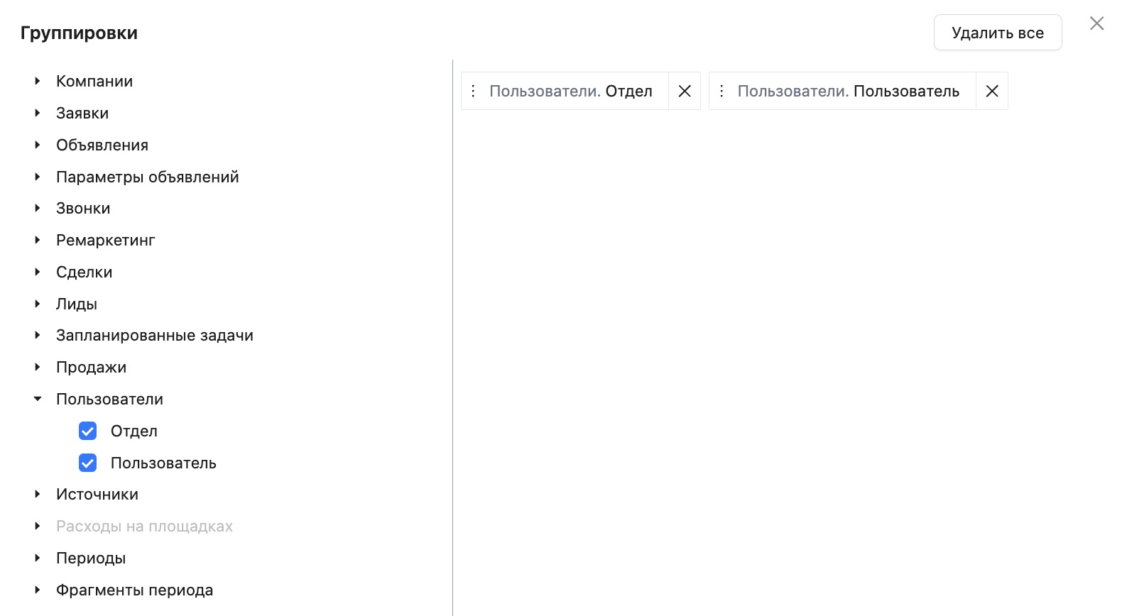 Подробные шаги по настройке отчета иллюстрированы на скриншоте ниже.