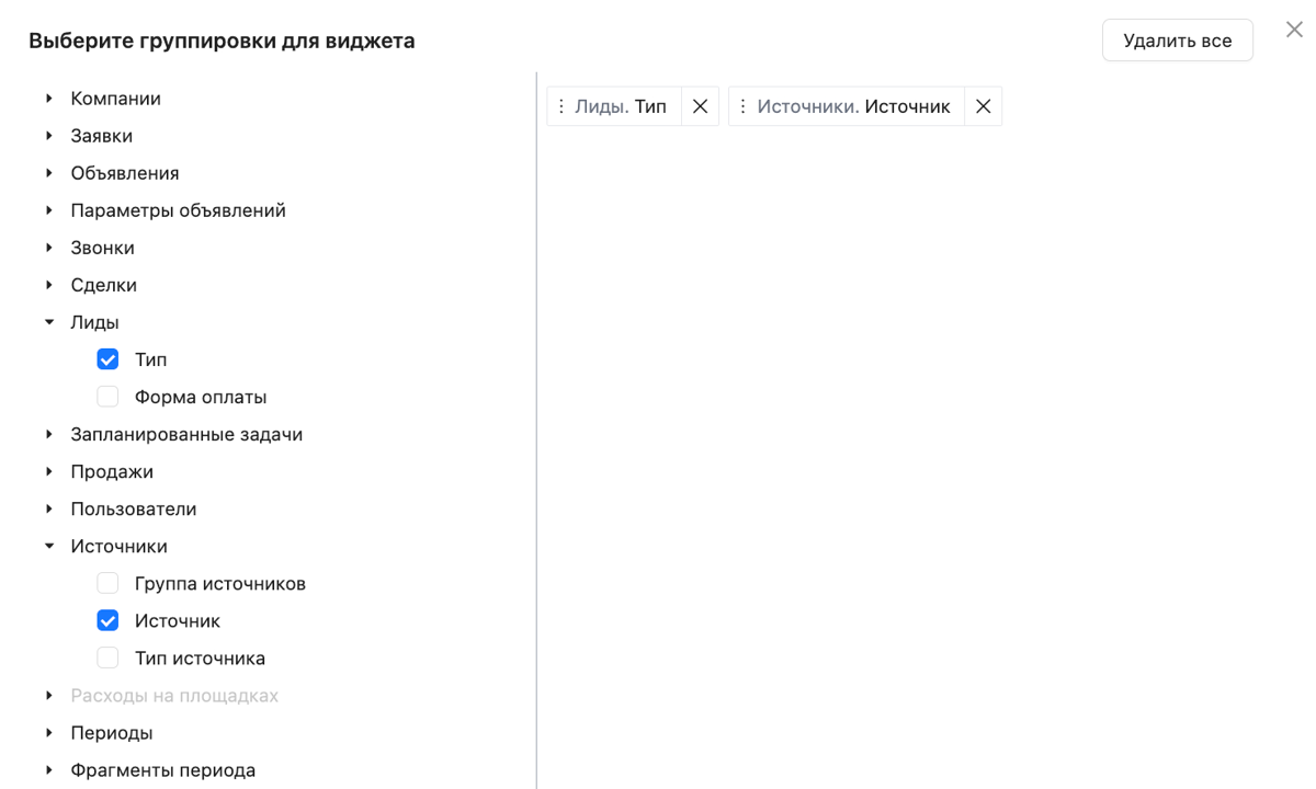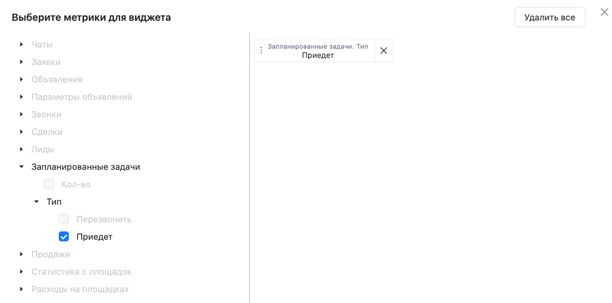 Настройки данного виджета аналогичны настройкам виджета "Приехали", изменяется лишь отслеживаемая метрика: