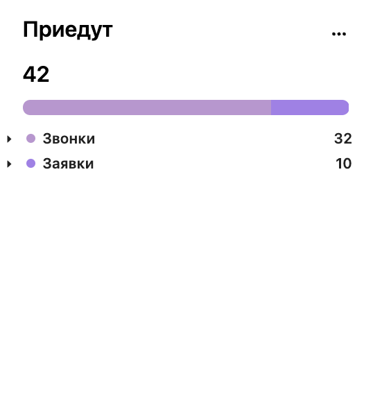 Виджет "Приедут" предназначен для отображения количества клиентов, ожидаемых в автосалоне на текущий день. Это удобный инструмент для планирования рабочего дня и координации работы персонала.