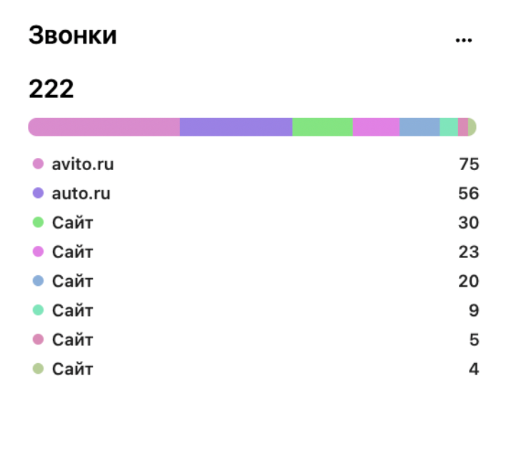 Этот виджет предоставляет базовую функциональность и не требует сложных настроек. Он отображает источники звонков в порядке убывания по количеству, с общим числом звонков указанным под названием виджета.